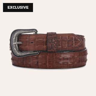 Cavender's Men's Chocolate Brown Caiman Hornback Print Western Belt