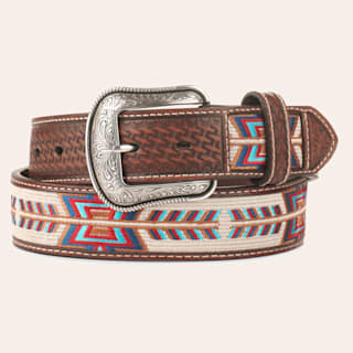 3D Belt Co Men's Brown with Red Blue and Cinnamon Aztec Stitch Western Belt