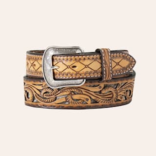3D Belt Co Men's Tooled Leather Calf Hair Underlay Western Belt