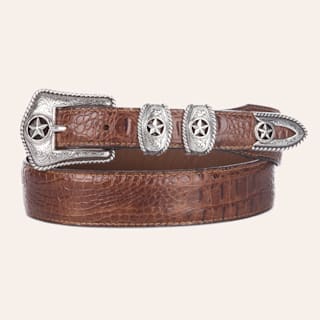 Tony Lama Men's Tan Country Crocodile Print with Silver Star Detailing Western Belt