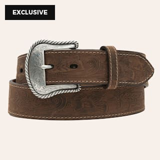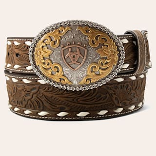 Ariat Men's Etched Oval Buckle Leather Floral Tooled Belt