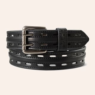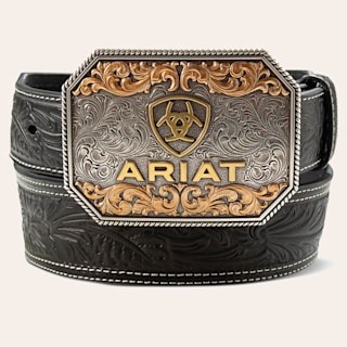Ariat Men's Etched Buckle & Black Genuine Leather Tooled Belt
