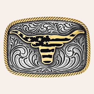 Montana Silversmiths Silver & Gold Western Patriotic Longhorn Belt Buckle