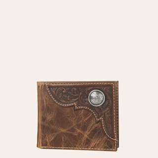 Ariat Distressed Brown Tooled Overlay Bi-Fold Wallet