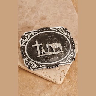 Montana Silversmiths Gunmetal Cameo Filigree with Christian Cowboy Belt Buckle
