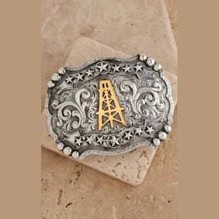 AndWest Silver with Gold Oil Derrick Western Scroll & Stars Belt Buckle