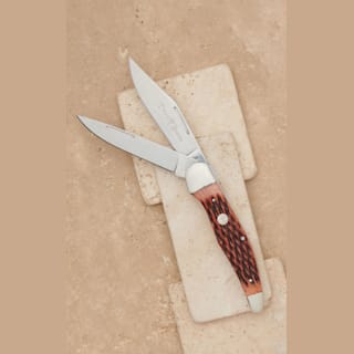 Tree Brand By Boker Traditional Series Folding Jigged Red Bone Hunter Knife with Sheath