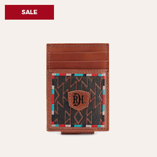 Red Dirt Hat Co. Brown Leather with Colorful Aztec Money Clip Card Case