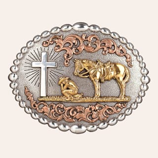 Nocona Two Tone Oval Praying Cowboy Belt Buckle