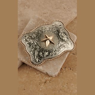 AndWest Men's Silver and Gold Scalloped Lone Star Etched Belt Buckle