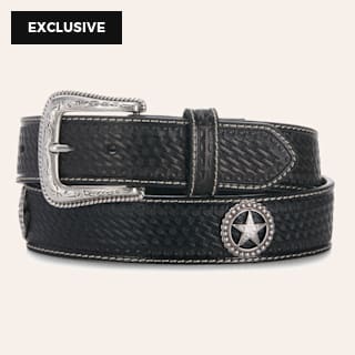 Cavender's Men's Black Basket Weave & Silver Star Concho with Etched Silver Buckle Western Belt