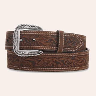 Ariat Men's Brown Floral Embossed Longhorn Buckle Belt