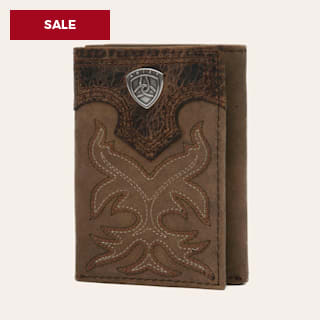 Ariat Distressed Brown with Boot Stitching Leather Tri-Fold Wallet