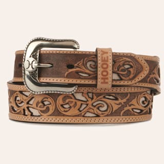 Hooey Men's Brown with Ivory Inlay Tooled Western Belt