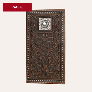 Nocona Tooled Leather with Studs and Conch Rodeo Wallet