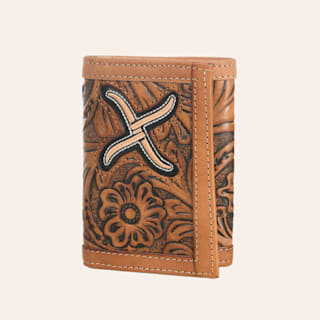 Twisted X Men's Natural Tooled Leather with Embroidered Inlay Tri-Fold Wallet