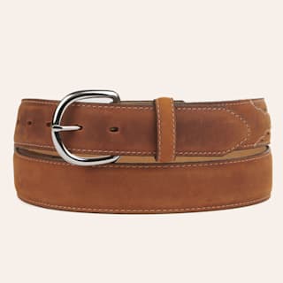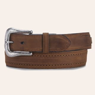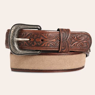 Cavender's Men's Medium Brown Embossed Leather & Light Tan Suede Inlay Belt