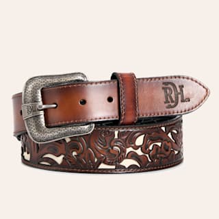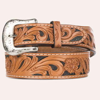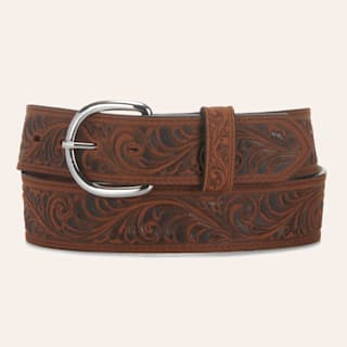 Ariat Men's Brown Leather Tooled Edge with Etched Buckle Western Belt
