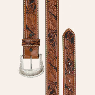 Red Dirt Hat Co. Men's Chestnut & Cream Floral Overlay Western Belt