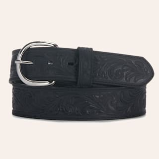 Justin Black Leather Tooled Scroll 1 3/8'' Western Belt