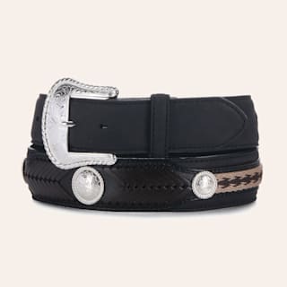 Tony Lama Men's The Duke Black with Embroidery and Conchos Western Belt