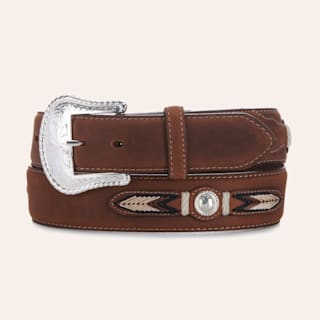 Cavender's Men's Medium Brown Embossed Leather & Chocolate Suede Inlay Belt