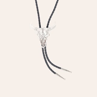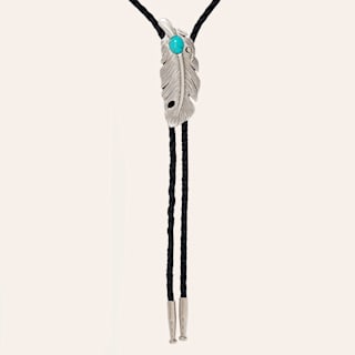 Double S Silver & Turquoise Feather Stone Bolo Tie
