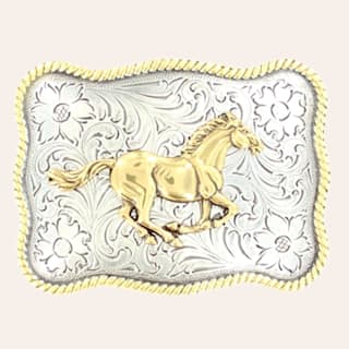 Nocona Silver With Gold Running Horse Scallop Buckle