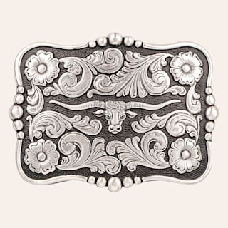 Nocona Silver & Black Rectangle Longhorn Belt Buckle