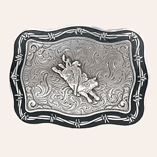 Crumrine Silver and Black Vintage Bull Rider Rectangle Buckle