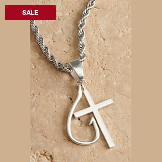 Twister Silver Chain Cross Fish Hook Necklace