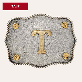 Andwest Frosted Initial "T" Antique Silver Belt Buckle