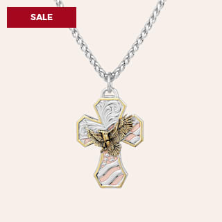 Montana Silversmiths Men's Silver Copper & Gold Eagle & Flag Cross Necklace