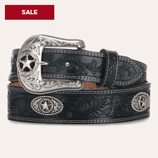 Justin Men's 5 Star Ranch Black Floral Tooled Leather Western Belt