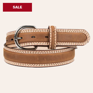 Tony Lama Men's Natural Bark Brown Double Stitch Stockman Western Belt