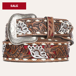 Nocona Men's Brown Genuine Leather Floral with Red Painted Inlay Western Belt
