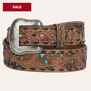 Nocona Men's Tan and Turquoise Inlay Floral Western Belt