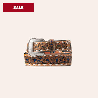 Nocona Men's Tan Genuine Leather Floral with Blue Inlay & White Lace Western Belt