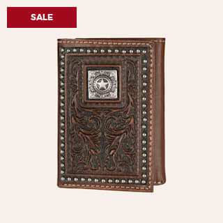 Nocona Brown Floral Tooled with Concho and Studded Edge Tri-fold Wallet