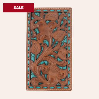 Nocona Tan Filigree with Turquoise Underlay Rodeo Wallet
