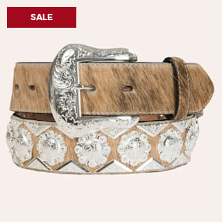 Ranger Belt Company Men's Brindle Cowhide with Show Silver Berry Concho Western Belt