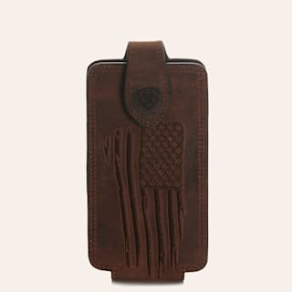 Ariat Brown Leather with Embossed Flag Large Clip-On Cell Phone Case