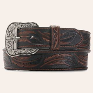 Ariat Men's Leather Feather With Tooled Sliver Buckle Western Belt