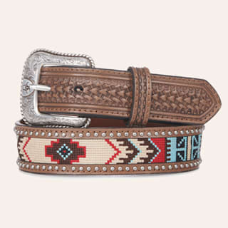 Ariat Men's Brown with Aztec and Studs Basketweave Western Belt