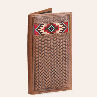 Ariat Brown Basketweave with Aztec Embroidery Rodeo Wallet / Checkbook Cover