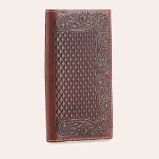Ariat Brown Tooled and Diamond Embossed Rodeo Wallet / Checkbook Cover