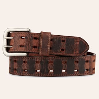 AndWest Men's Tan Double Perforated Leather Western Belt