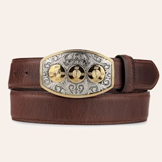 AndWest Men's Brown Leather with Shotgun Shell Buckle Western Belt