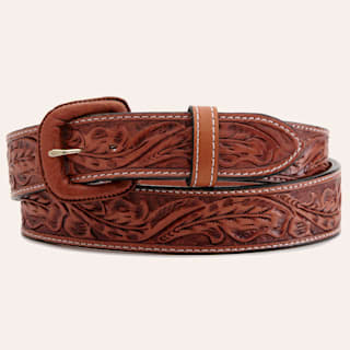 Vogt Men's Saddle Brown Over Under Leaf Tooled Western Belt
