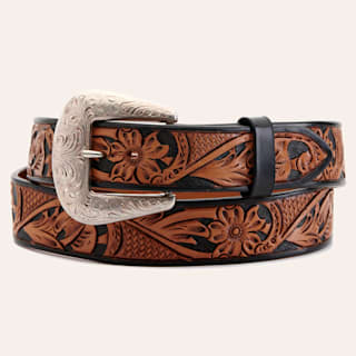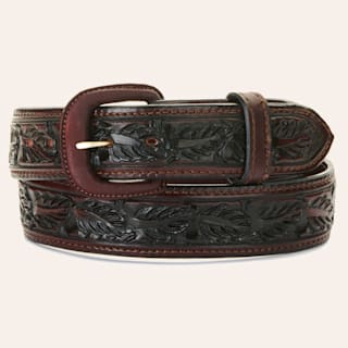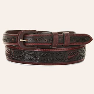 Vogt Men's Russet Brown and Black Floral Tooled Western Belt